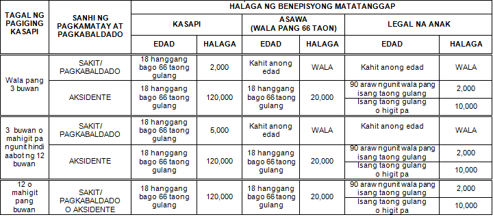 (Tandaan: Ang benepisyo para sa pagkabaldado ay ukol sa kasapi lamang.)